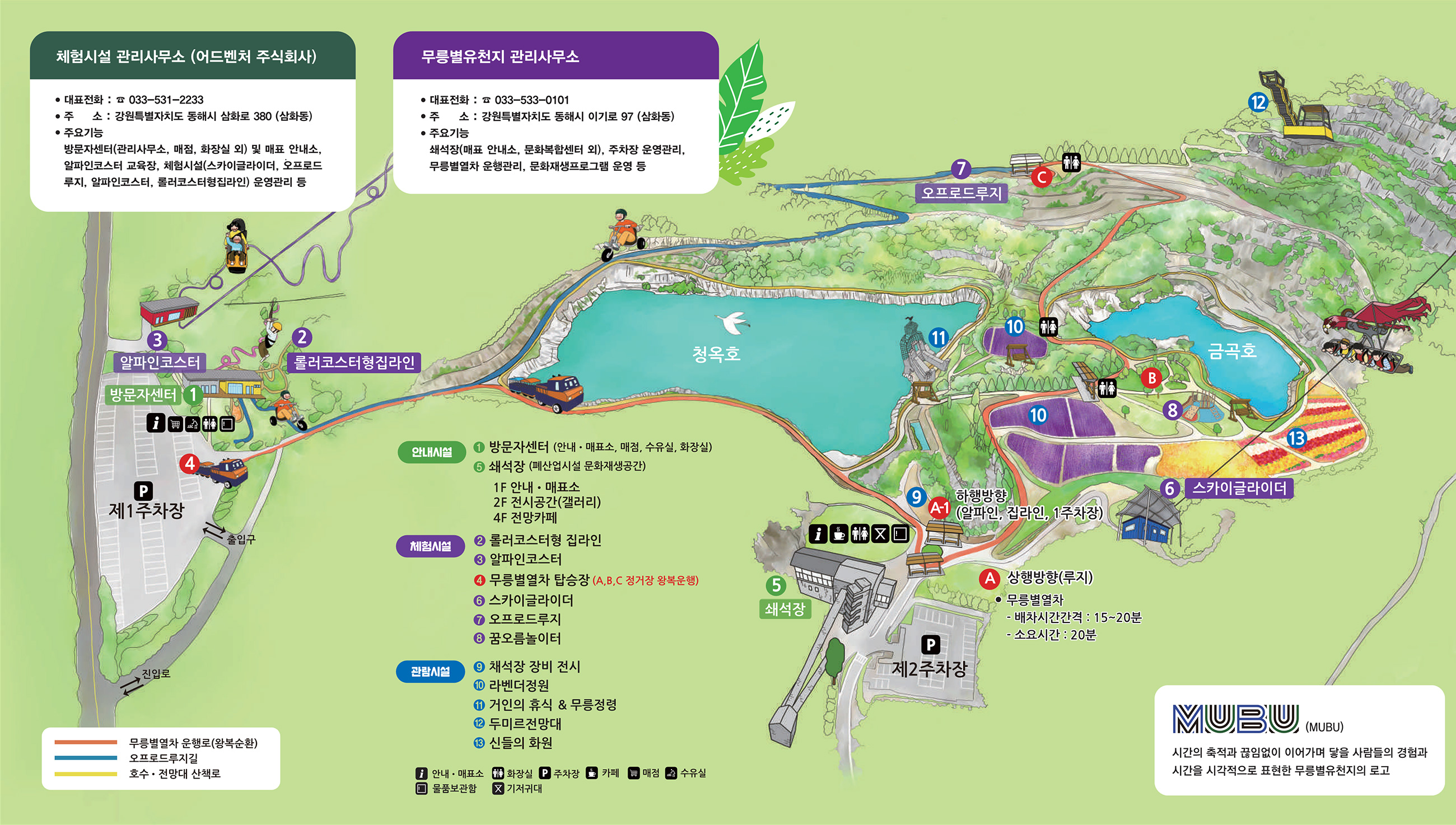 - 할인 : 강원특별자치도민은 50% 할인, 20인 이상 단체 20% 할인