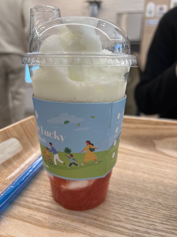 같이간 동생은 커피를 못먹는 상남자라 딸기가 포함된 스무디같아 보이는걸 시켰다