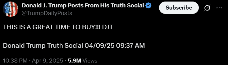 미국의 소셜미디어 회사 Truth Social(트루스소셜) 의 모회사인 트럼프 미디어 & 테크놀로지 의 미국 주식 티커명이다.
